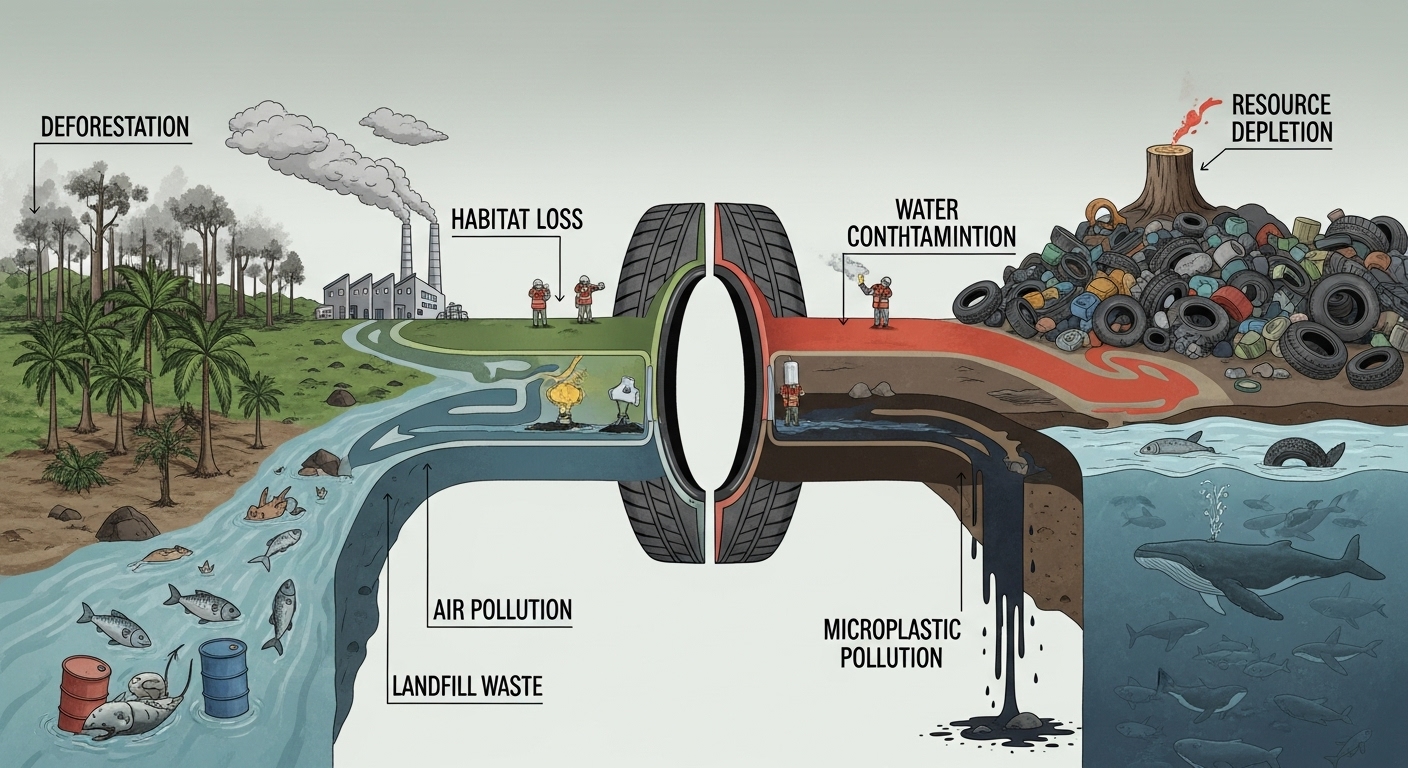 Kauçuk, doğrudan çevreye bırakıldığında uzun yıllar boyunca doğada kalabilir. Bu nedenle doğru atık yönetimi kritik öneme sahiptir.